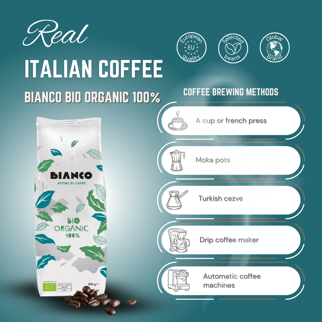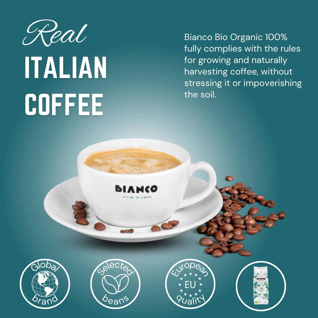 Discover a taste journey to the heart of Italy with BIANCO ORGANIC 100%, a genuine Italian coffee that will bring notes of passion and sophistication to your cup.